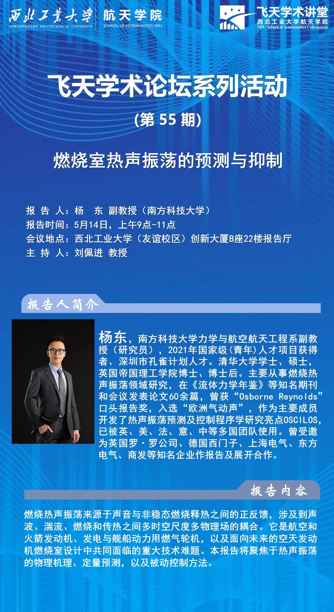 飞天学术论坛系列活动(第55期)燃烧室热声振荡的预测与抑制